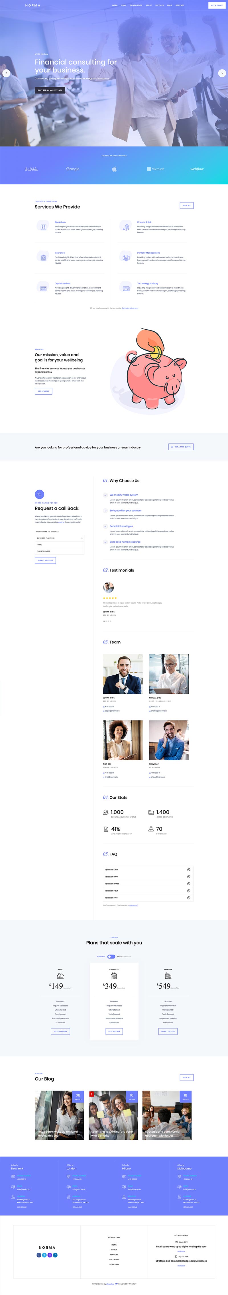 With a range of pre-design content blocks, components and plugins, Norma provides great options.